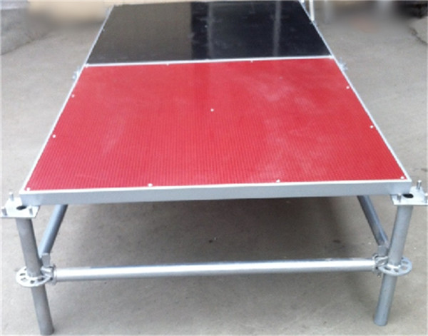 规格:1.22m*1.22m;材质:框架为50*25*1.5矩管,主管为48*2管,横拉为48*2管,黑色面板为15mm厚度出口专用建筑胶合板,两面防水覆膜;材质:框架为50*30*1.5P型管, 主管为48*2管,横拉为48*2管,红色面板为18mm厚度出口专用建筑胶合板,防水防滑覆膜。